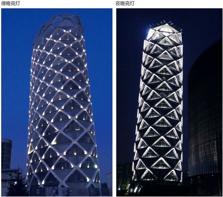 当我们在北京的夜空与这座建筑相识,“钻石灯笼”这个名字就变得更容易识记,这栋161米高的超甲级写字楼,从首都国际机场进京路上最先映入眼帘的建筑。很显然“钻石灯笼”成了国门形象区的地标性建筑,作为“国门地标”承袭中国传统文化的关键,比如颇具中国特色,寓意吉祥的折纸灯笼造型。